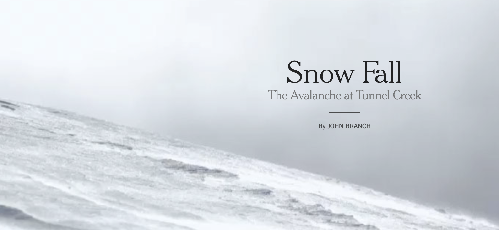 Source is the name of the Knight-Mozilla OpenNews project, dedicated to encouraging the community of journalists and coders that make up new media. On New Year’s day, they published an analysis of the New York Times’ Snowfall: The Avalanche at Tunnel Creek, a ground-breaking piece of multimedia web journalism. I’ve gone back to both again and again.